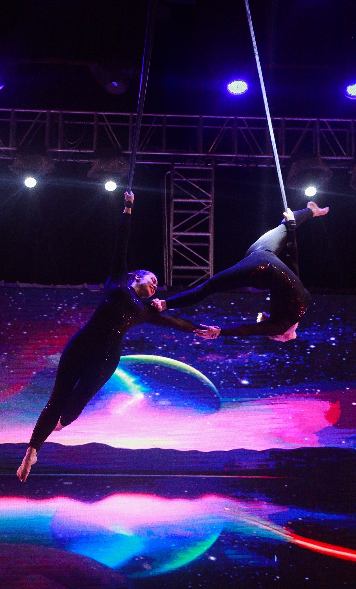 Together they present you two breathtaking performances: aerial acrobatics on the straps, and an aerial performance on the circus trapeze, in which the beauty of the interaction between two people is perfectly combined with accompanied by music.