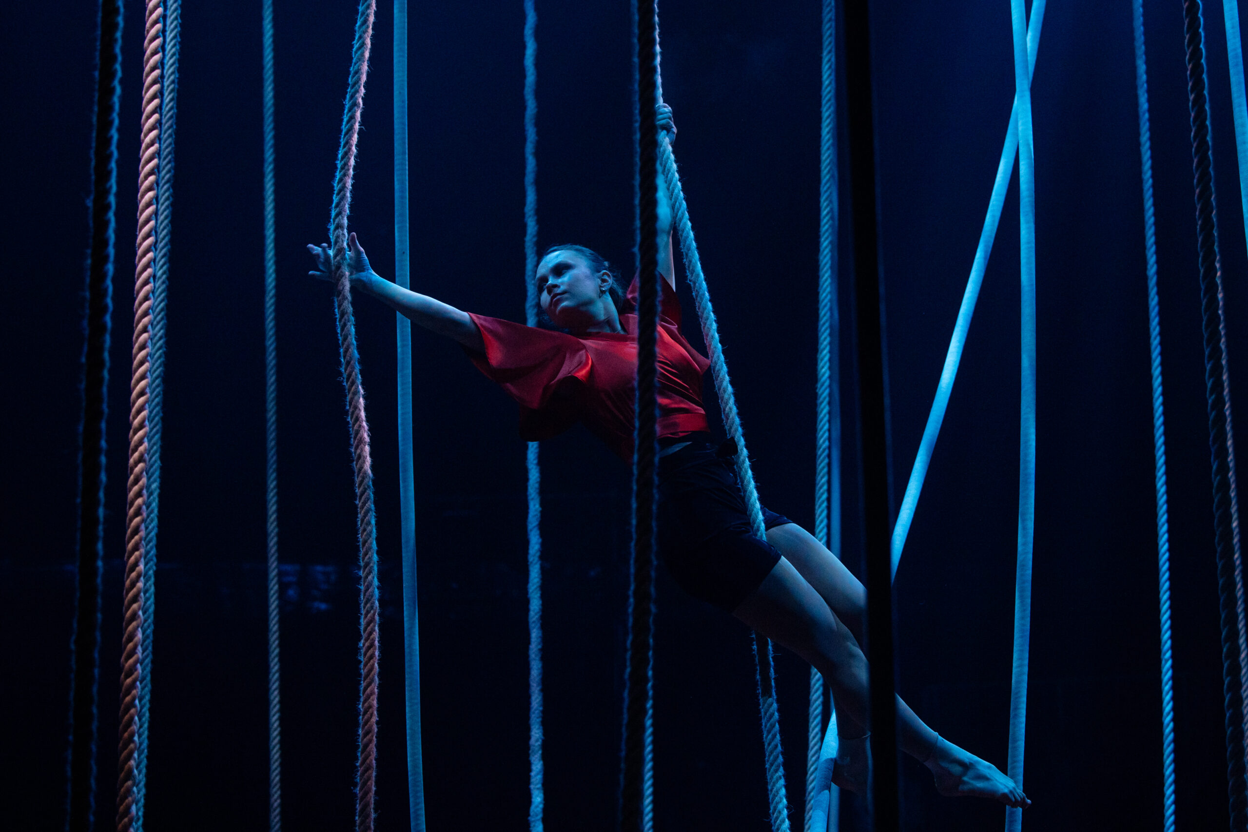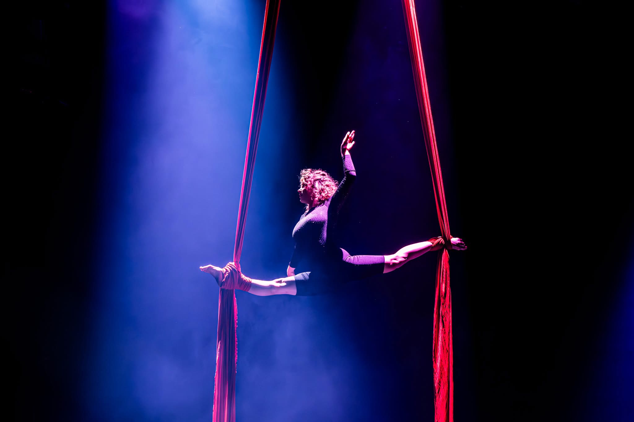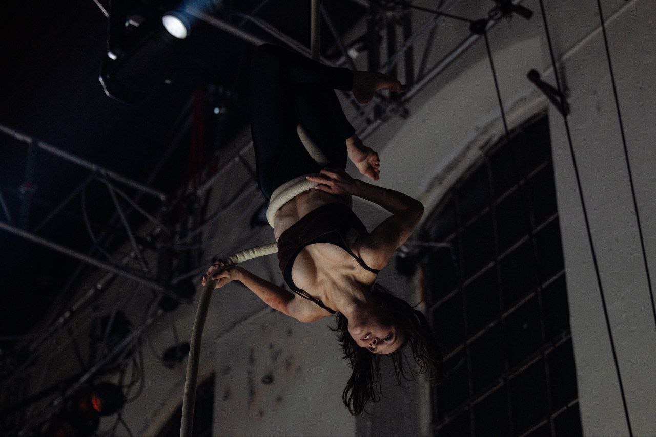 This is Karina Zarutskaya annd she is from Ukraine. She has visited many festival in Ukraine with circus. Than at 15 she moved to Kyiv and entered the Kyiv Municipal Academy of circus and Variety Arts. She was doing aerial rope during my education. She did two years at the academy. Than in Prague for almost four years working in Cirk la Putyka theatre, she has learned aerial hoop, aerial rope, group acro, aerial silks, Russian bar, aerial straps and Handbalancer.